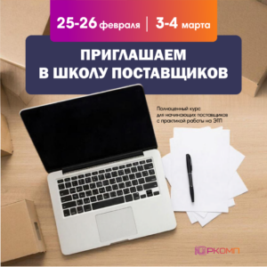 «Школа поставщиков» — полноценный курс для начинающих поставщиков с практикой работы на ЭТП. Выпускники курса могут участвовать в закупках, осуществляемых в рамках действия федеральных законов 44-ФЗ и 223-ФЗ.